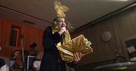"Ich bin der Prinz der Klippe, nur auf der Kippe, auf Messers Schneide kann ich schreiben ... Schreib schreib schreib ... am besten über mich ... Der postfordistische Arbeitskraftspieler, der sich als sein eigenes Opus bestimmt... Tipp Tipp Tipp (hämmert auf seine Schreibmaschine ein) --- und da tippt er nun und tippt und tippt am Wettschalt--- nein im offenen Werkprozess seiner entsicherten, eigendefinierten Existenz, die sich immer schwerer aufschreiben lässt... nennen wir es doch "Aufzeichnungen aus der Spielererlebnishölle" ja das ist gut, im infernalischen Galopp heruntergetippt. Fortuna übernimmst du bitte das Tippen, ich diktiere Dir weiter --- Autor des eigenen Lebens sein, heißt das: Autor eines Aktivitätenprotokolls sein? Wo ich doch lieber der Schöpfer einer absoluten Dichtung wäre?"